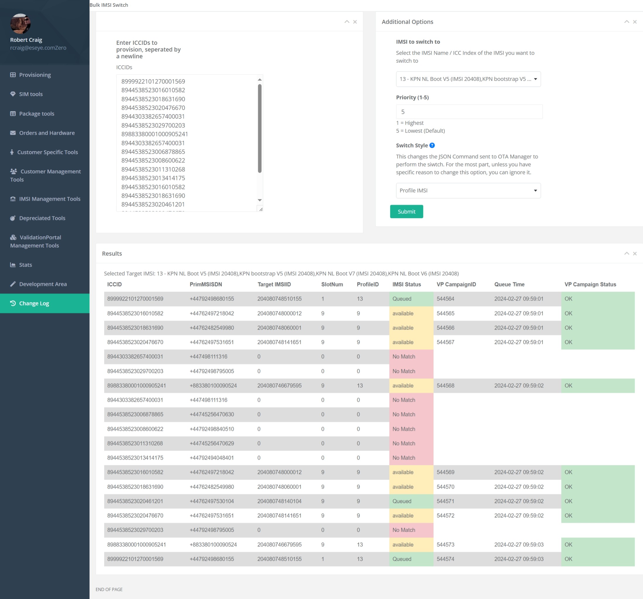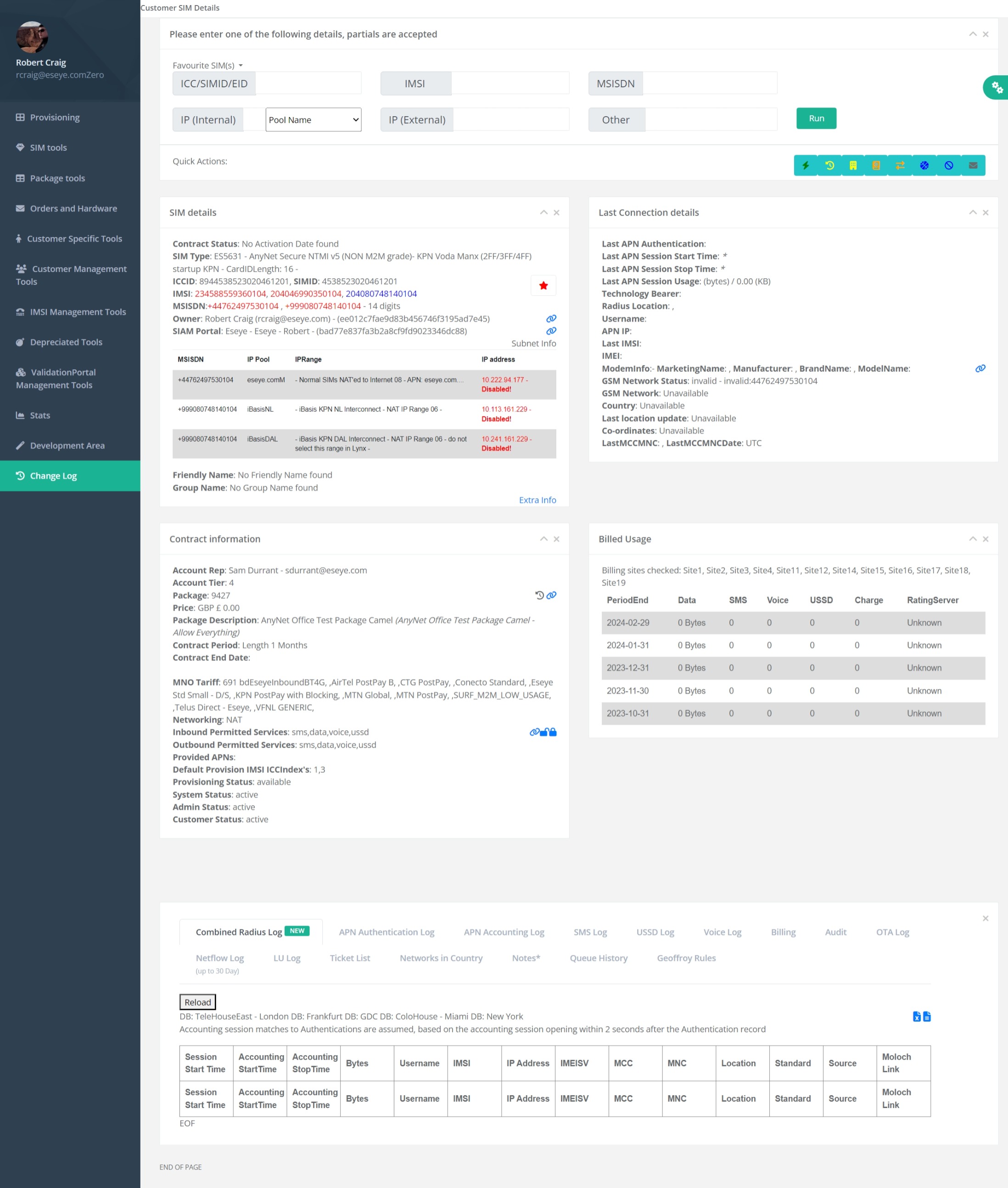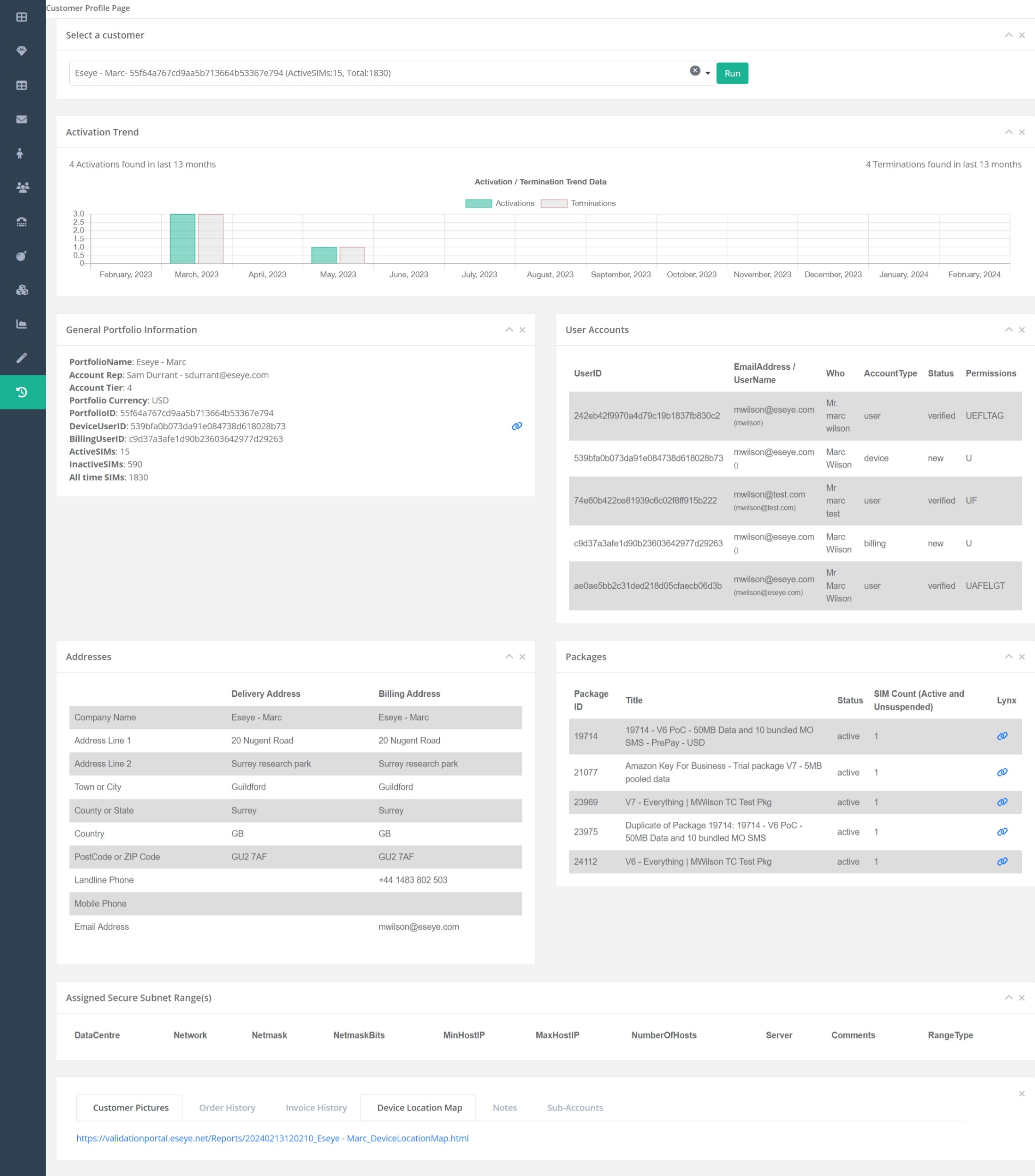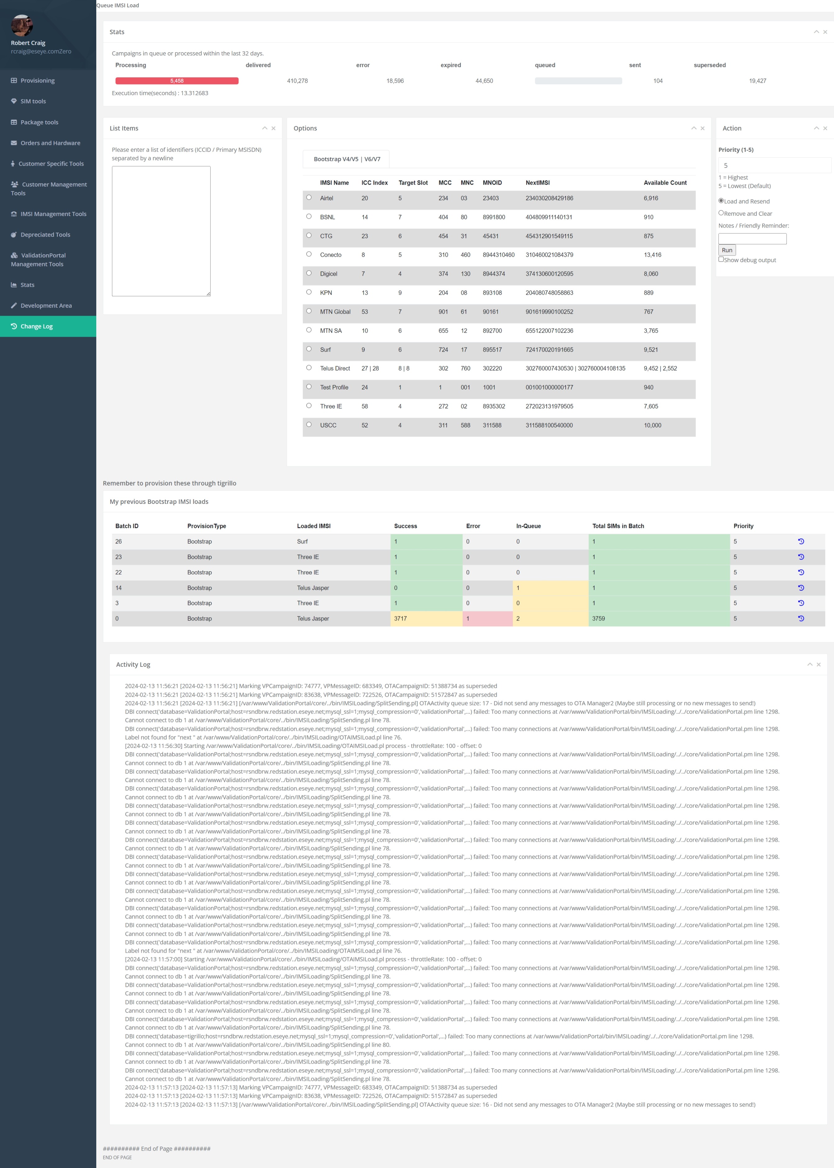 ValidationPortal is a comprehensive internal suite and API framework developed at Eseye Ltd to support global IoT operations. It centralises SIM‑level diagnostics, automates provisioning workflows, and provides real‑time visibility into connectivity across multiple mobile network nodes and backend systems.