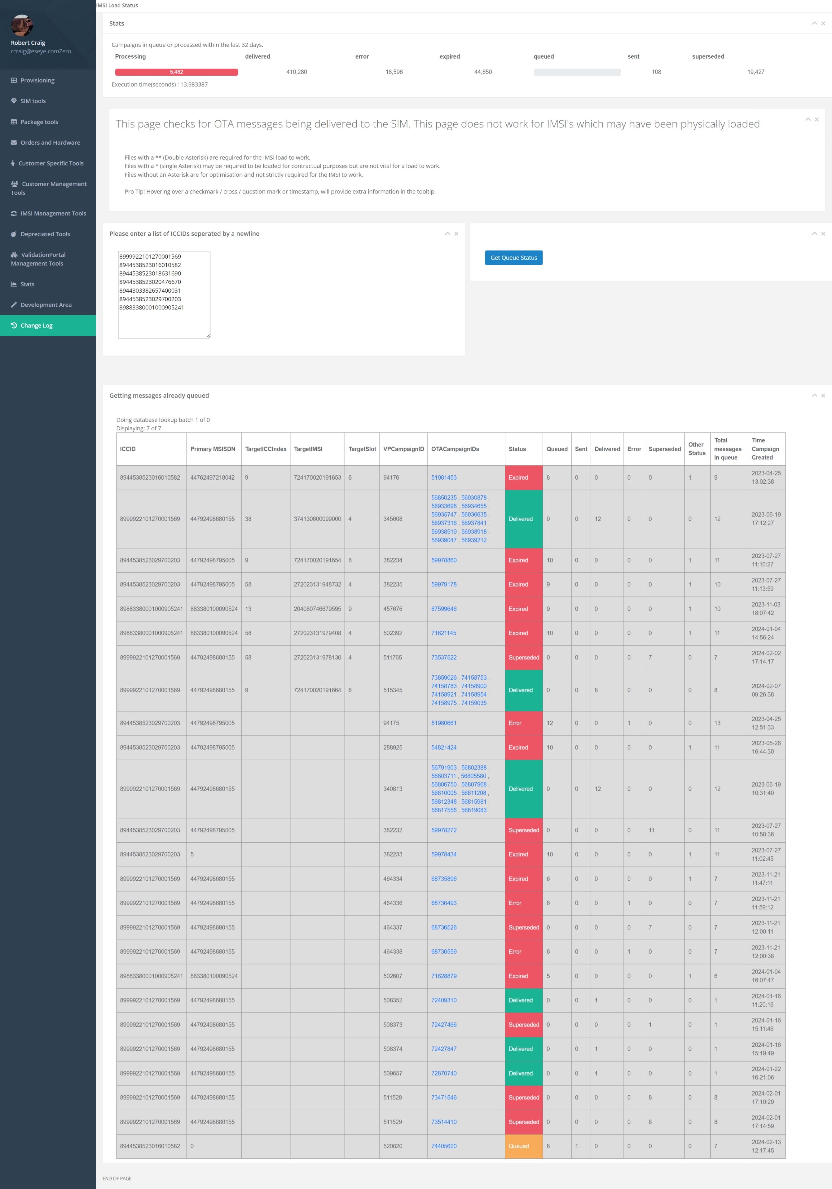 A flagship component of ValidationPortal is the centralised SIM‑level diagnostics interface, providing a single source of truth across numerous backend systems.
